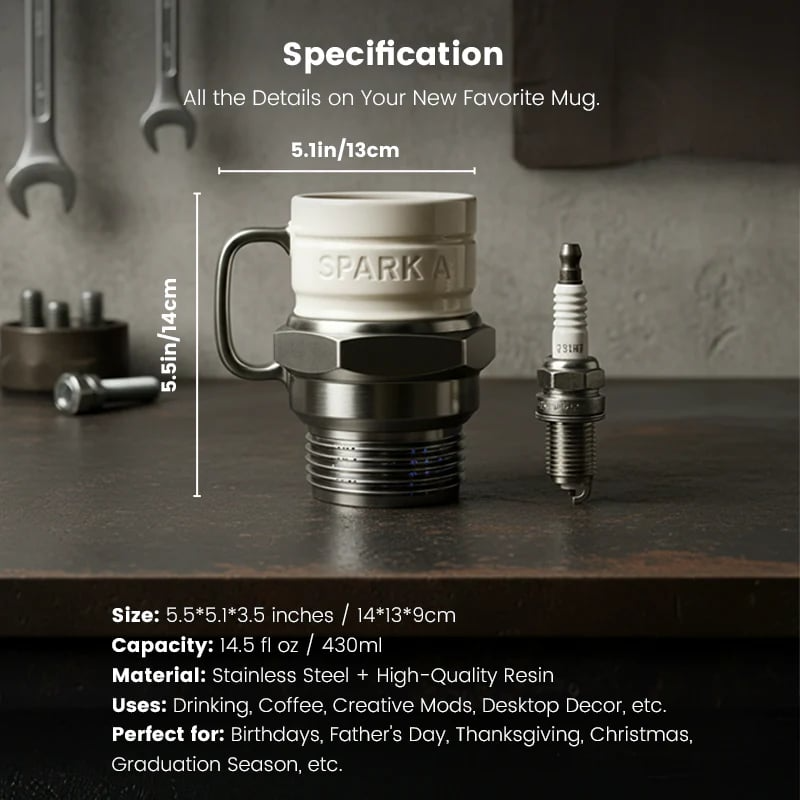 Unmatched Novelty & Detail ✨: We focus on high-fidelity design. This isn't a generic car mug; it's a sculptural, functional piece of art that perfectly captures the look of a real spark plug.