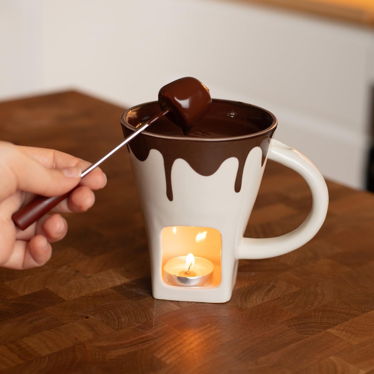 Unlike traditional fondue setups, this mug uses a simple tealight candle for heating, allowing you to create your own candles and add a personal touch to the experience.