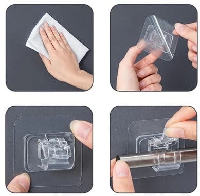 Secure your curtain or towel rods with ease – no tools, no damage, just strong adhesive support. These sleek, transparent brackets are perfect for modern homes, offering a reliable hold on smooth surfaces like tile, glass, or metal.