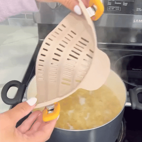 Easily attaches to the edge of most pots, allowing hands-free draining without transferring food.