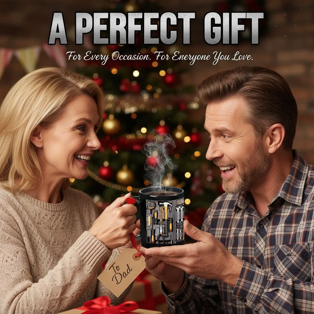 Forget about plain, boring cups that lack any real personality. The realistic toolbox design honors his hard work, making his morning coffee feel like a well earned reward.